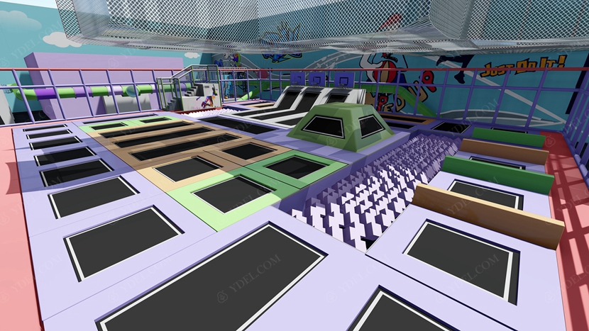 BCGY-17大型蹦床樂(lè)園采用分層設(shè)計(jì),下面是蹦床公園,上層則是設(shè)計(jì)成拓展游戲項(xiàng)目,這樣既節(jié)約了場(chǎng)地又豐富了玩法,這樣的大型蹦床樂(lè)園設(shè)計(jì)可提供更為豐富的玩法體驗(yàn)。
