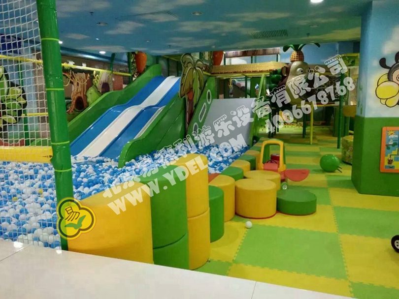 迎面遇上了充氣大白熊,進(jìn)入開心日記森林部落。彩色繩網(wǎng)不提步步高,蹦床屋寨嗨翻天,巨大的胡蘿卜裝飾,讓孩子們感受濃濃的部落生活氣息。