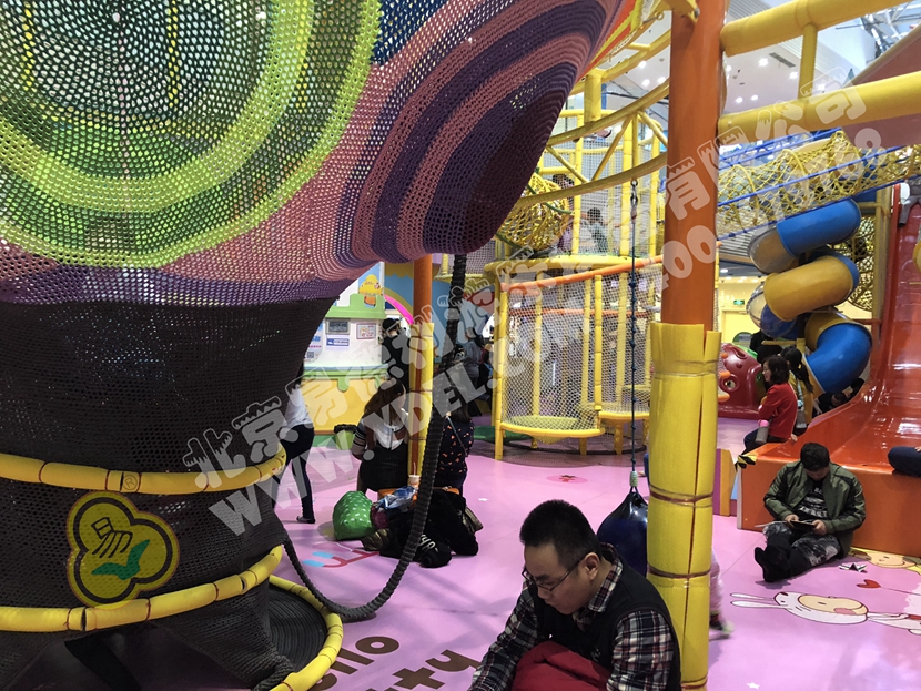分兩個區(qū)域:淘氣城堡和闖關(guān)區(qū);這個項目集成了多種新產(chǎn)品及設(shè)計理念,我們的設(shè)計人員與安裝人員是功不可沒的!下面我?guī)纯催@些新奇好玩的游樂設(shè)備!