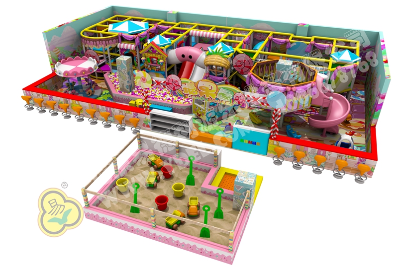 糖果屋,甜甜的,美美的。孩子們,無論是男孩還是女孩都喜歡甜甜的糖果,誘人的外觀裝飾設(shè)計,讓人看了不禁想要親近,進(jìn)入玩耍。麻雀雖小五臟俱全,小小面積旋轉(zhuǎn)木馬,海洋球池,圍著柱子的瞭望臺等等應(yīng)有盡有。