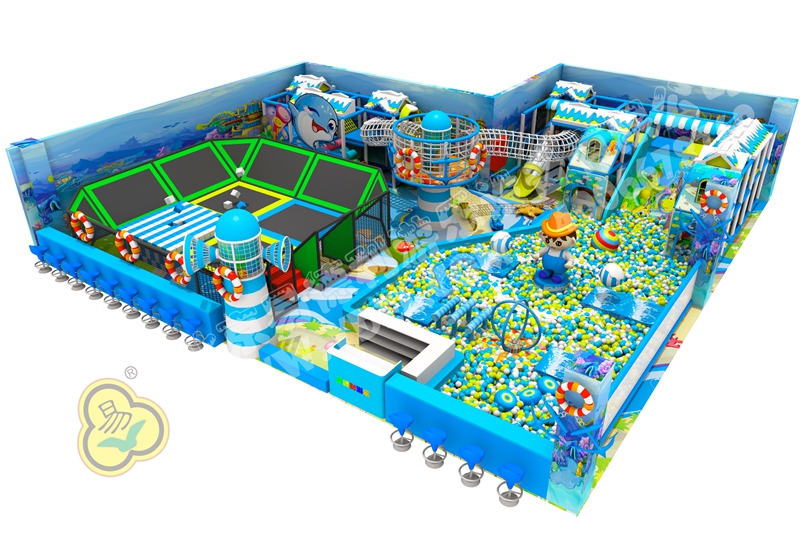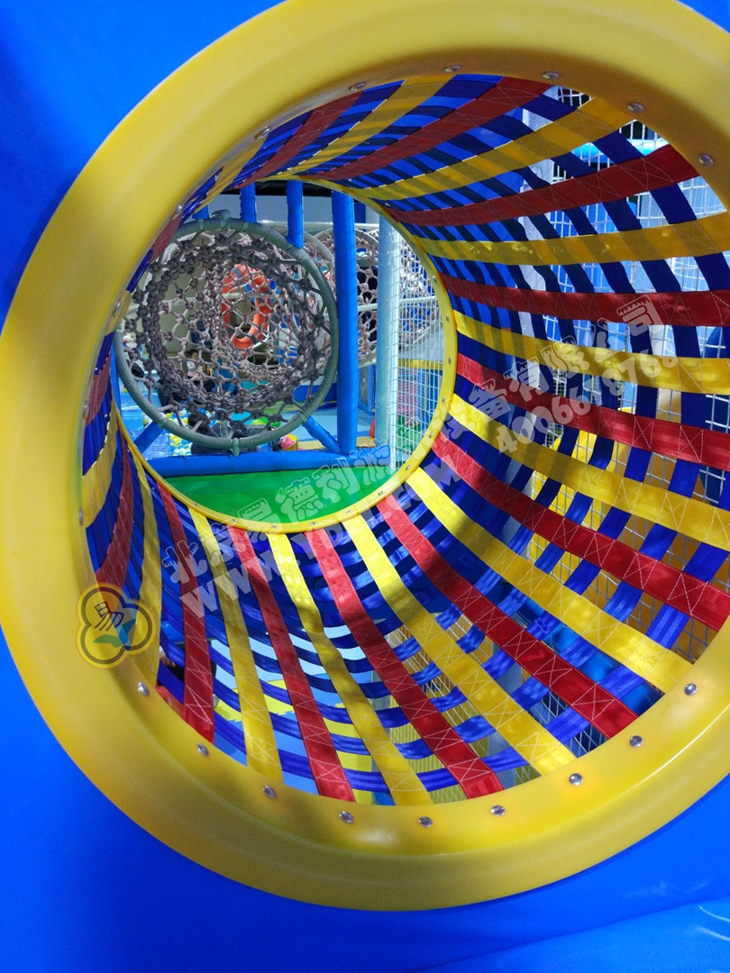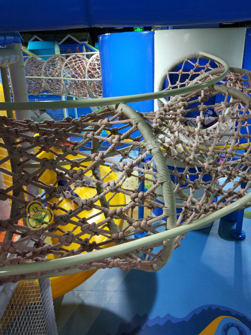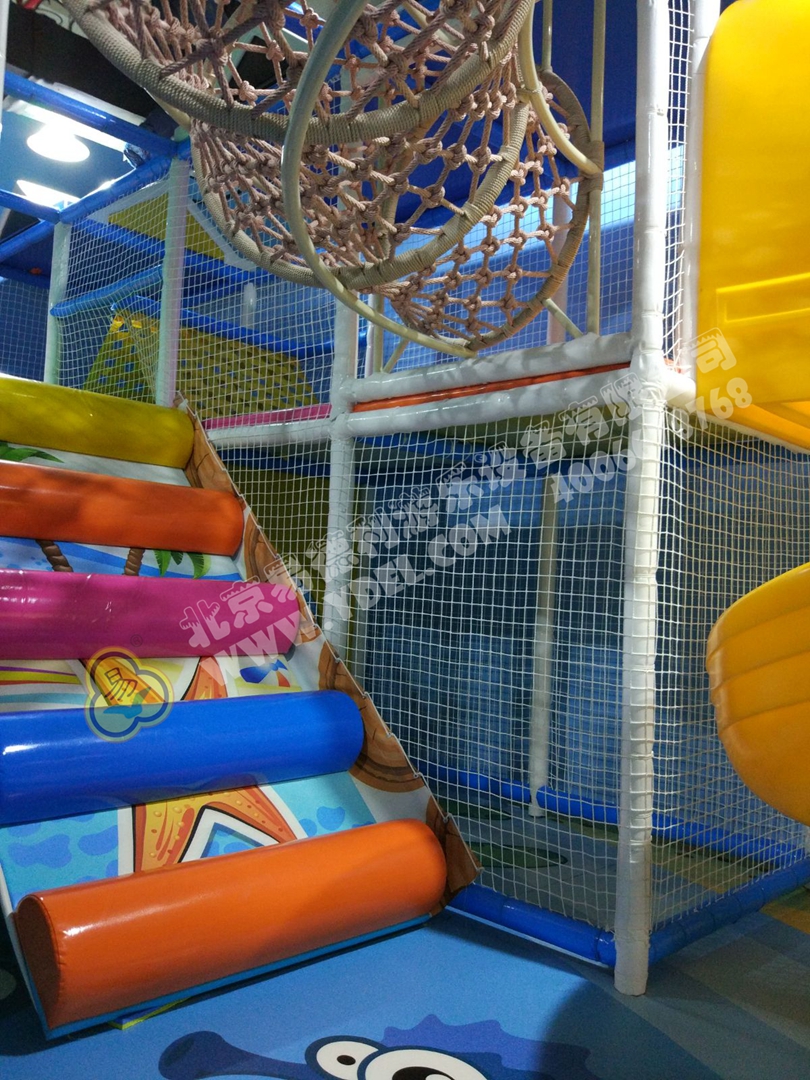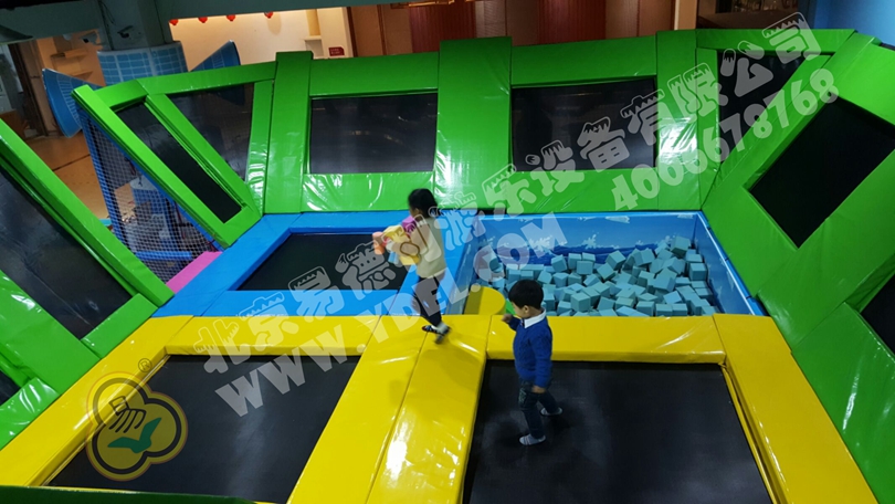 正面蹦,側(cè)面蹦,這就是超級蹦床的無限可能,一言不合就跳入中間的海綿塊池體中暢游??蚣芘郎蠠羲t望臺,又順著網(wǎng)繩爬到球池上方,中心投影大滑梯,生動互動。