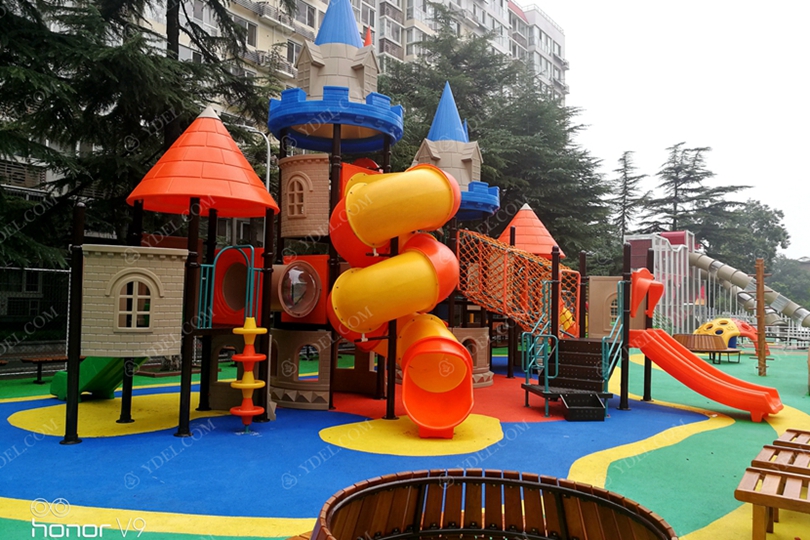 幼兒園戶外組合滑梯由以下配件組合而成,因此得名組合滑梯:門(mén)、過(guò)橋、滑筒、頂子、爬梯、扶手、臺(tái)板、立柱、滑梯、攀爬管、和繩網(wǎng);幼兒園滑梯全 部用扣件連接,表面沒(méi)有任何尖銳物確保小孩子在游玩時(shí)候的安全。
