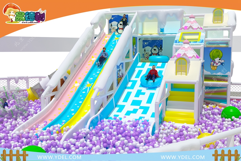 易德利淘氣堡296系列,淘氣堡框架和百萬(wàn)球池相望配置,多條大滑梯,還有滑草,做好姿勢(shì)一沖而下。